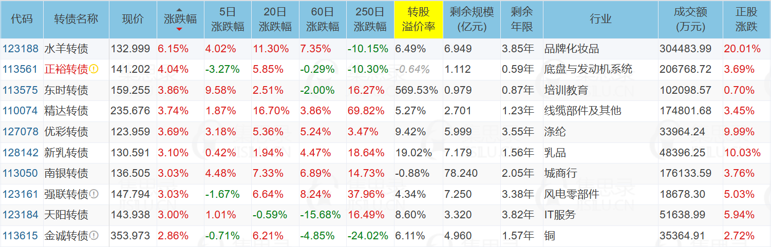 水羊股份(20.01%)、永冠新材(-9.98%)