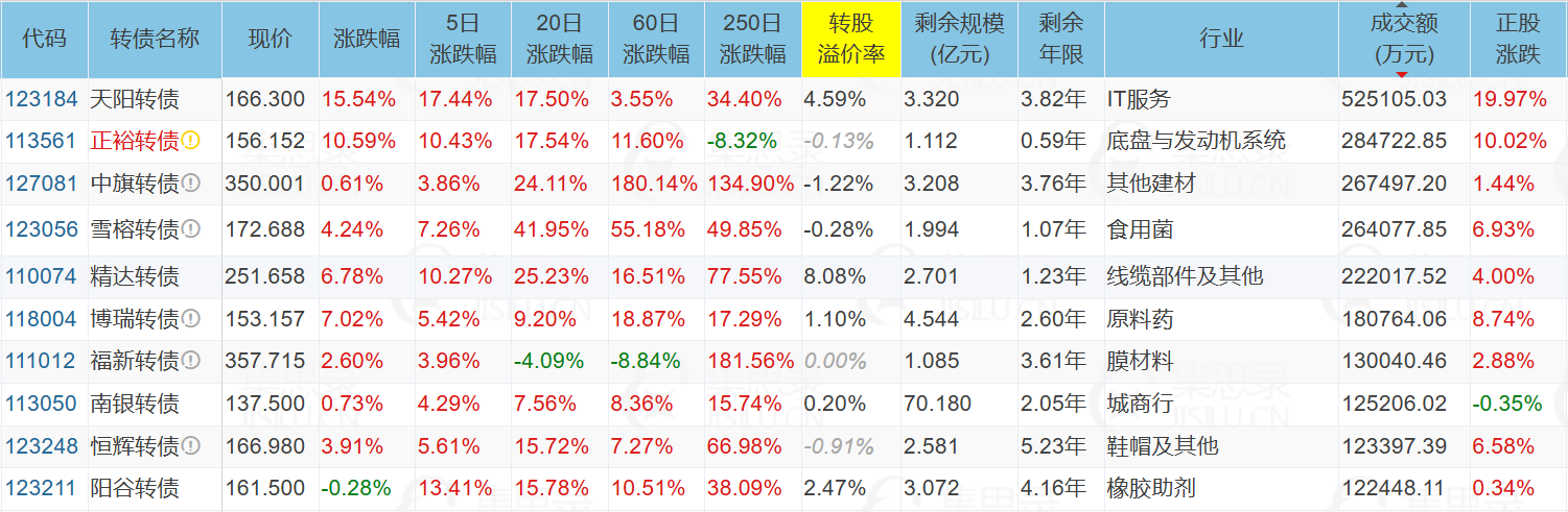 侨银股份(10.04%)、天阳科技(19.97%)、天阳转债(15.54%)