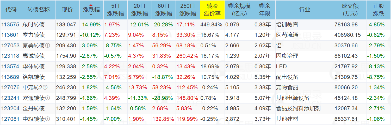 ✦今日跌停转债/正股: