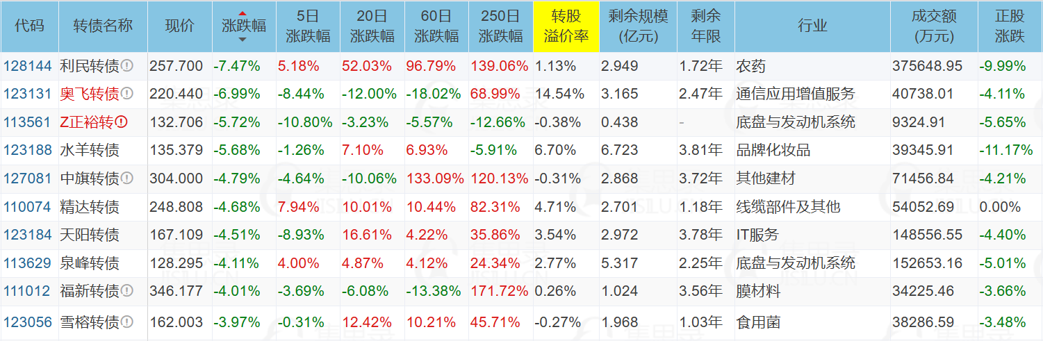 利民股份(-9.99%)、绿茵生态(-7.04%)、正元智慧(20.03%)