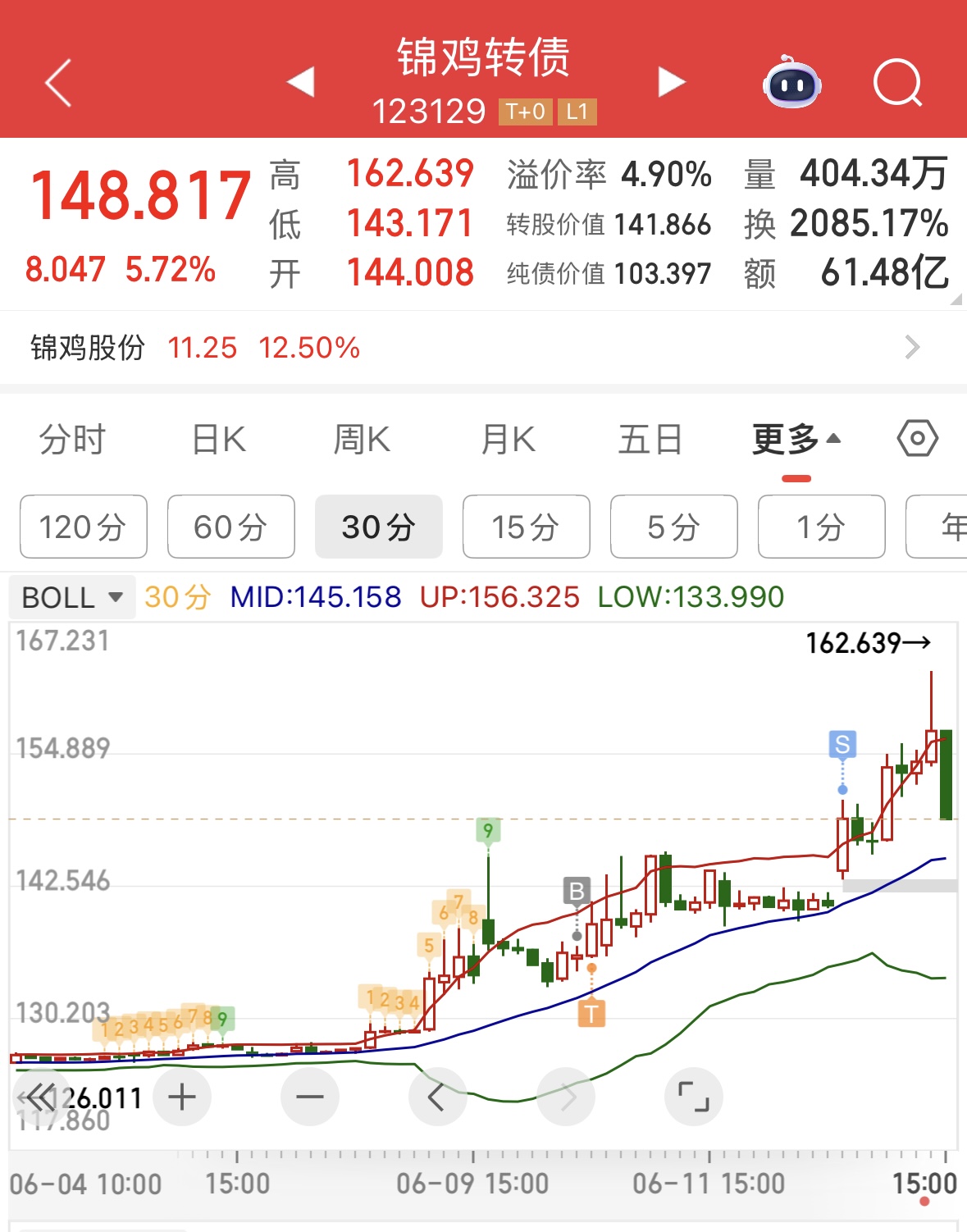 1、锦鸡转债,今天再度吃肉。不过提前卖飞了,持有4天,只赚到了10.48%。