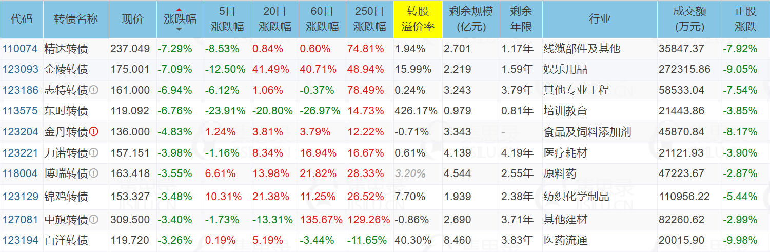 ✦今日跌停转债/正股: