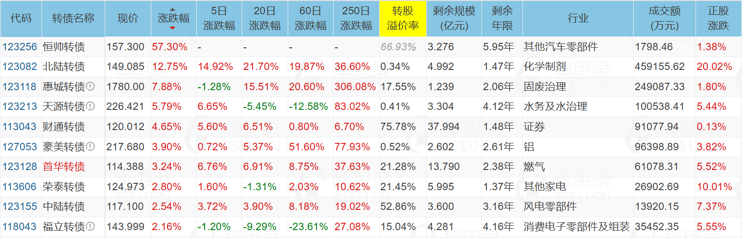 4)恒帅转债:流通规模0.94亿的新债,被炒作,有翻倍潜力。