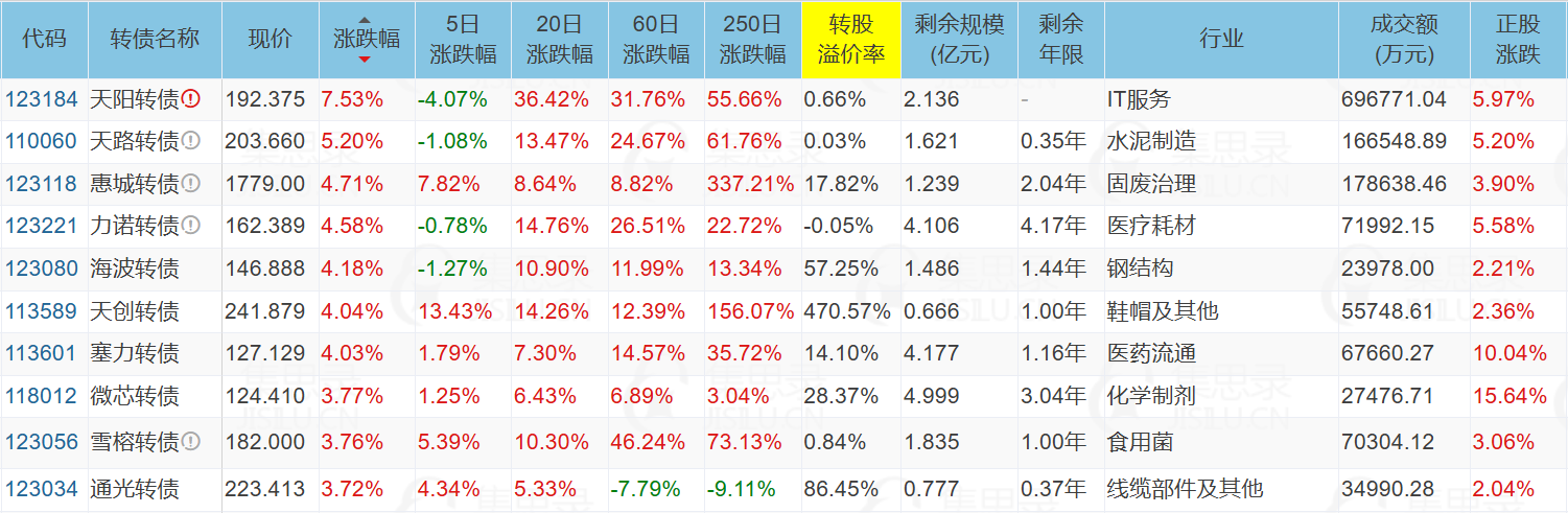 1、川恒转债,公告强赎。7月15日停止交易。现价129.4元,溢价率-0.54%暂时没有太大下跌空间,但是剩余规模10.2亿太大了,后面债随股走,不过下跌的可能性大。