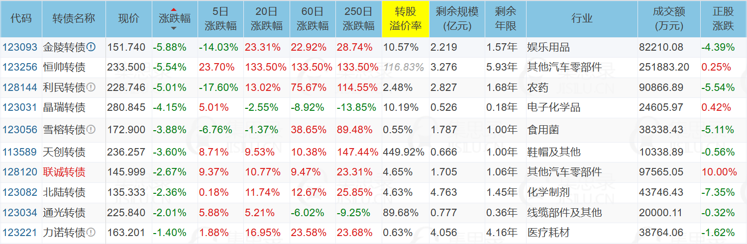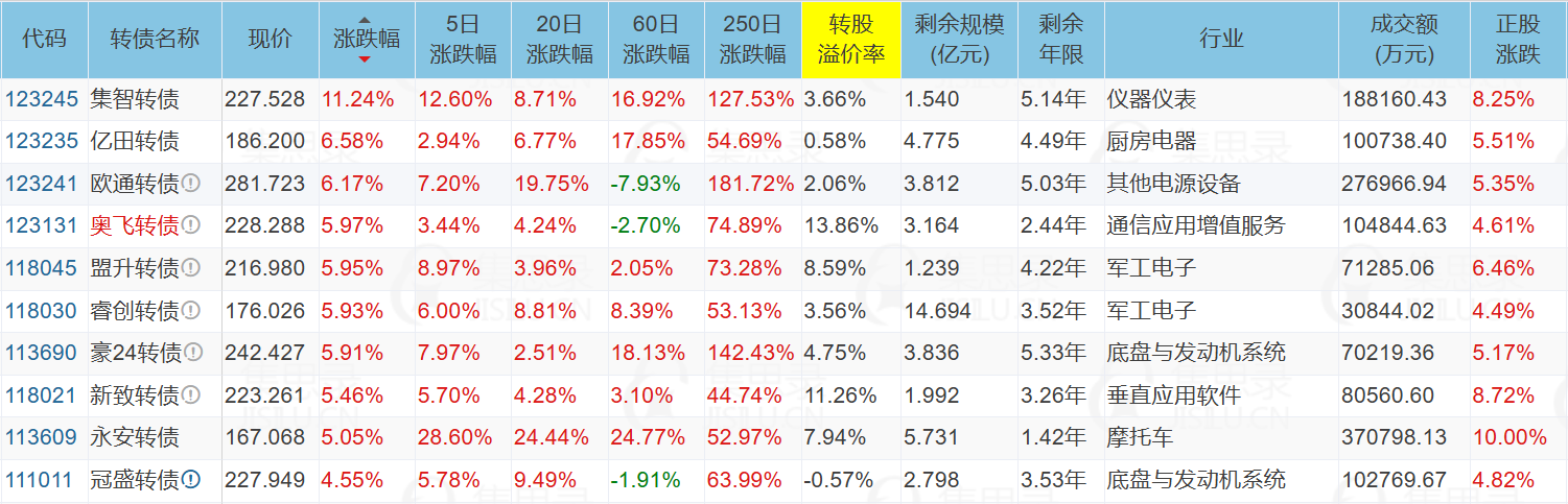 3、冠盛转债,公告强赎。最后交易日未定。现价227.949元,溢价率-0.57%,杀溢价风险不大,债随股走。