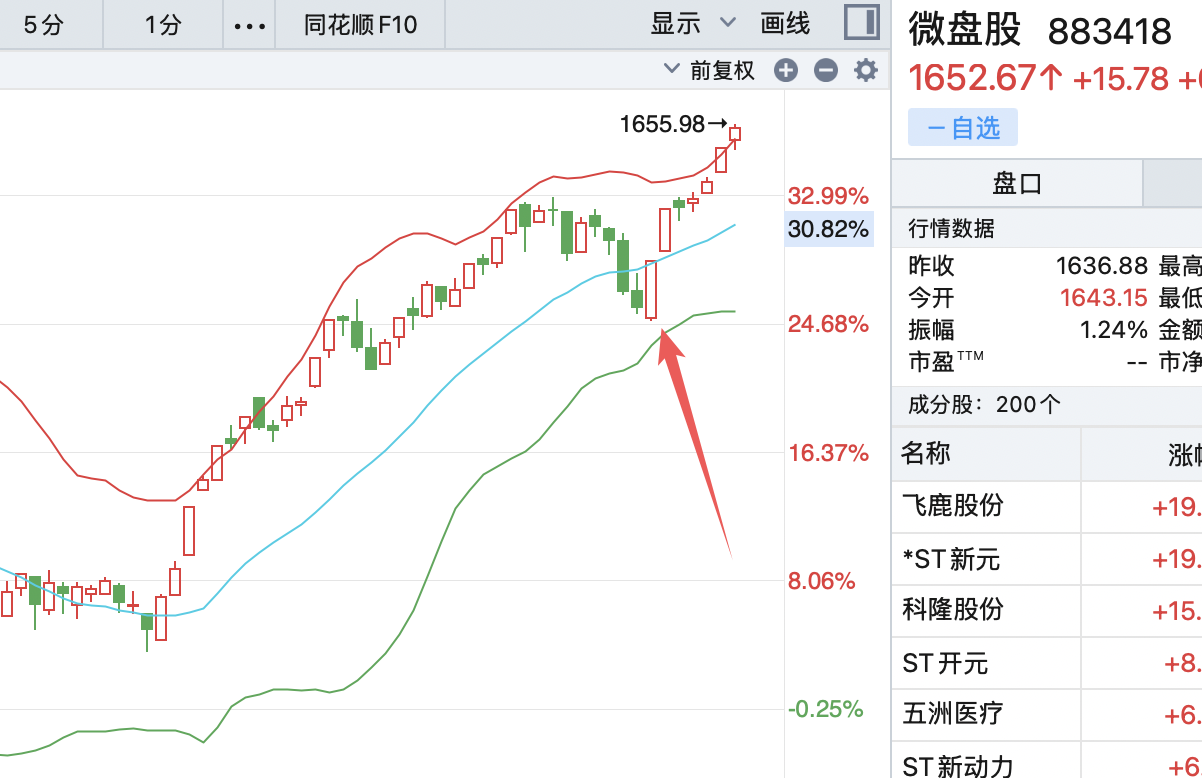 今天市场上午冲高回落了一下,下午又开始强势上涨了,而且是红利、小盘齐涨,微盘股更是7连涨,继续创出新高。