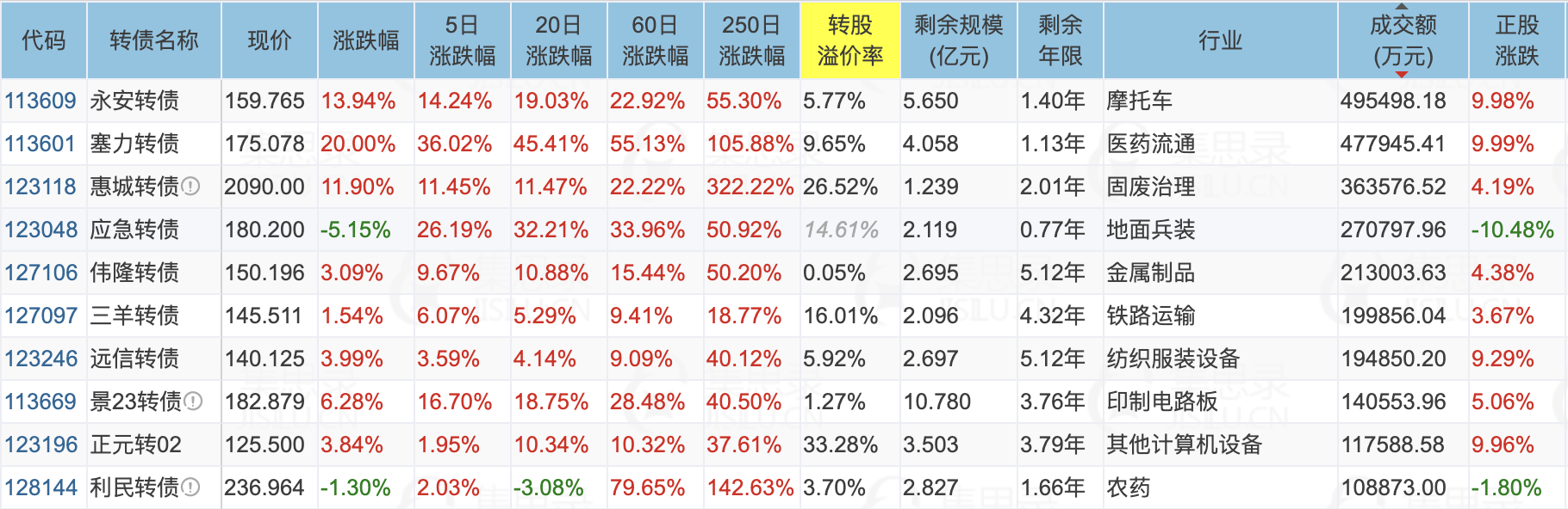 1、涨幅榜前十