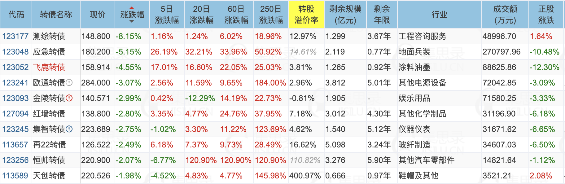 ✦今日跌停转债/正股: