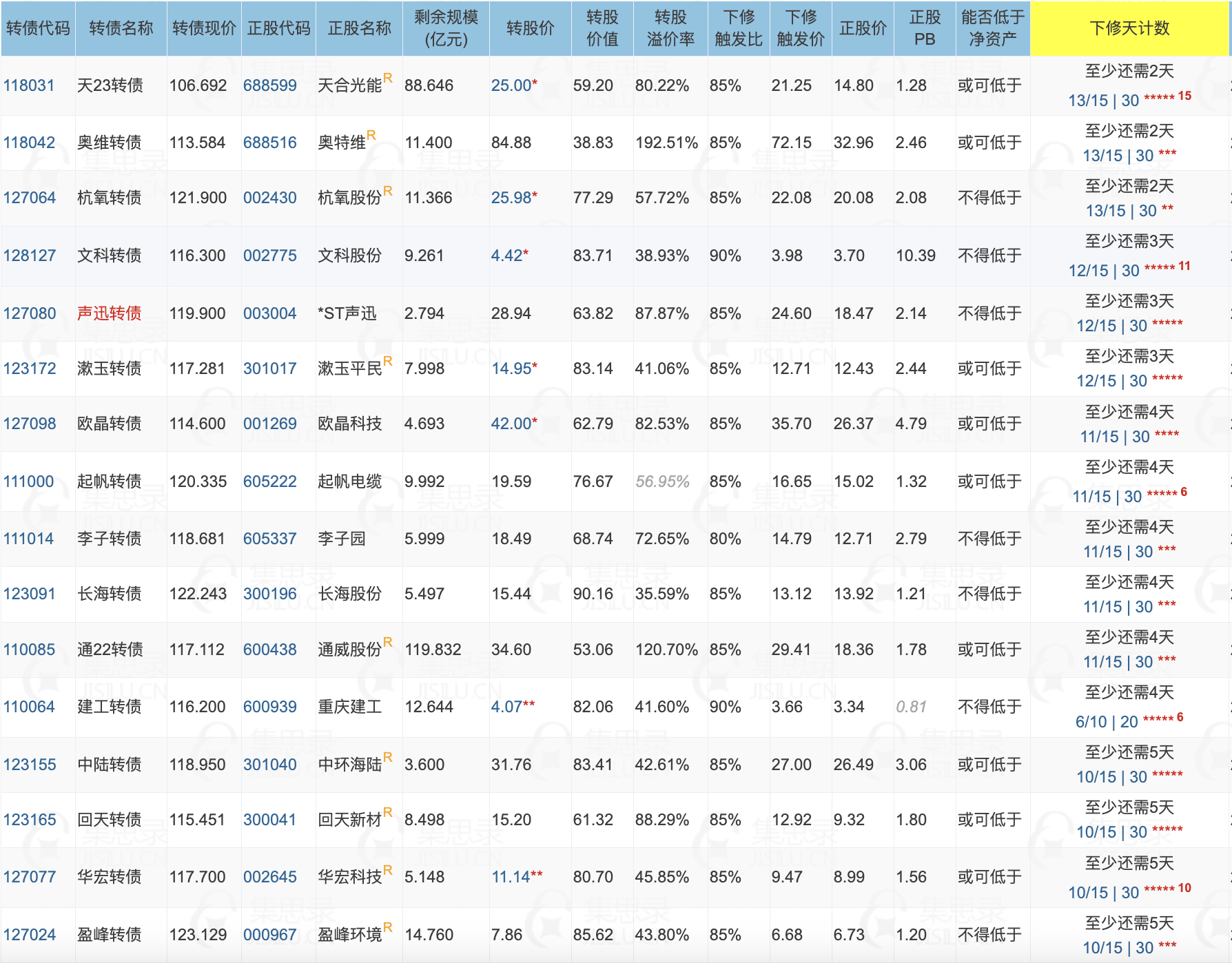 其中转股价值接近或大于130元,且规模大于3亿或溢价率大于3%的转债,需要注意强赎后杀溢价的风险。