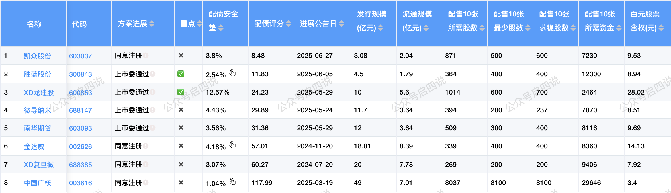 目前有8只配债股在同意注册或上市委通过阶段,在等待发行中。