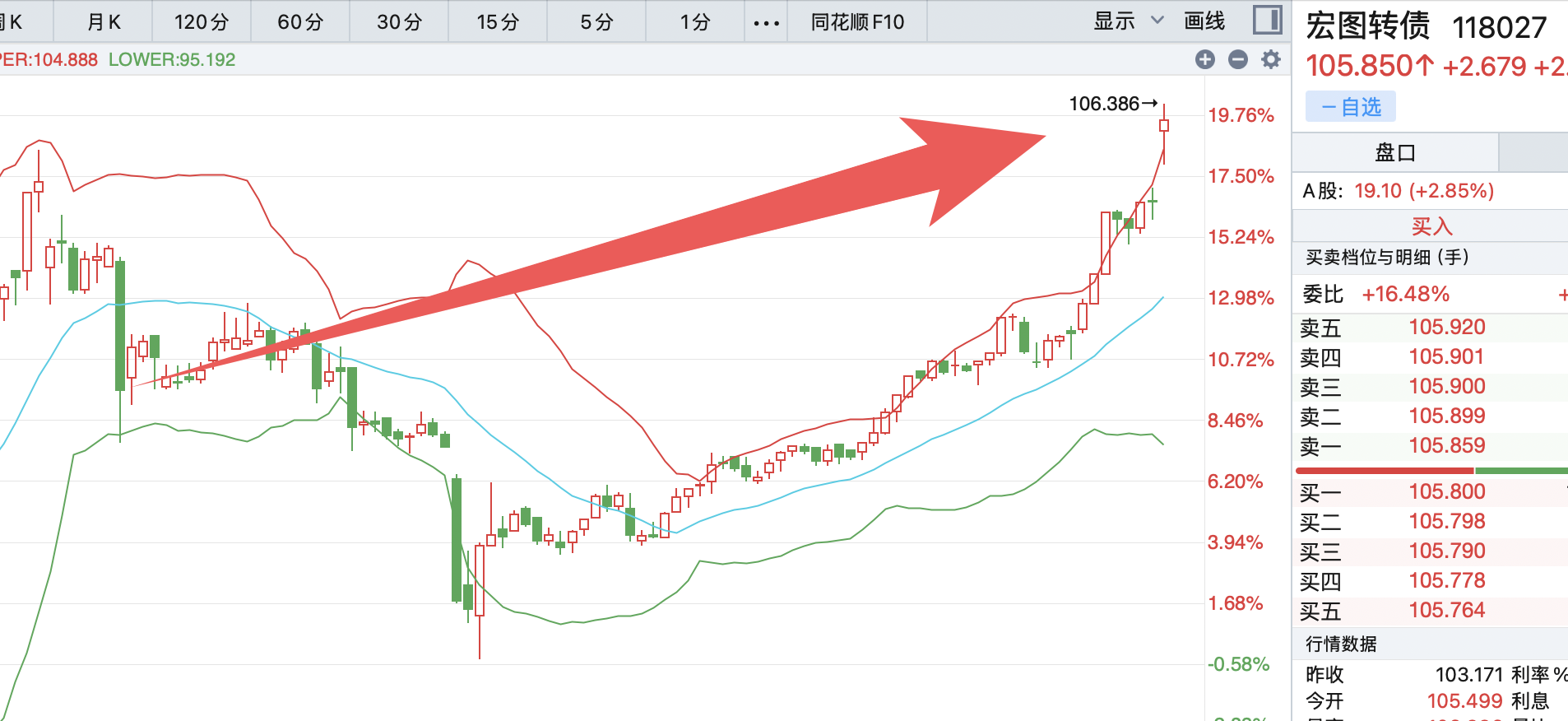 4、宏图转债,我在2月24日,96.2元建仓,目标价是104元,今天终于到了目标位。