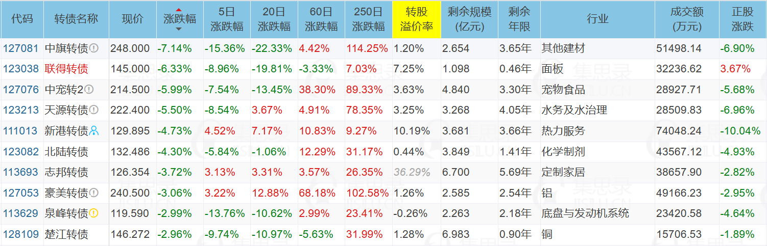 ✦今日跌停转债/正股: