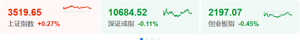 A股三大指数涨跌不一,截至收盘,沪指涨0.27%,深成指跌0.11%,创业板指跌0.45%,北证50指数涨0.55%,沪深京三市成交额14809亿元,较上日缩量2557亿元。两市超3100只个股上涨。