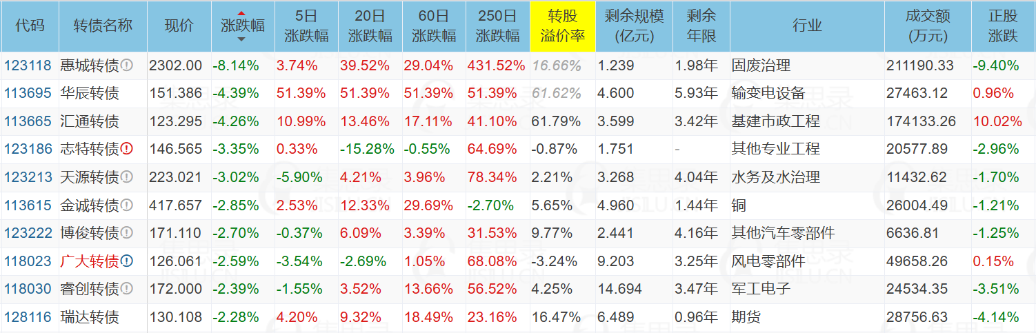 ✦今日跌停转债/正股: