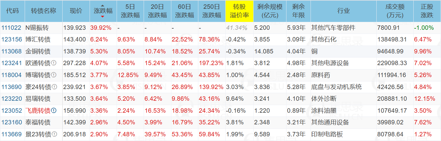 ✦今日龙虎榜转债/正股: