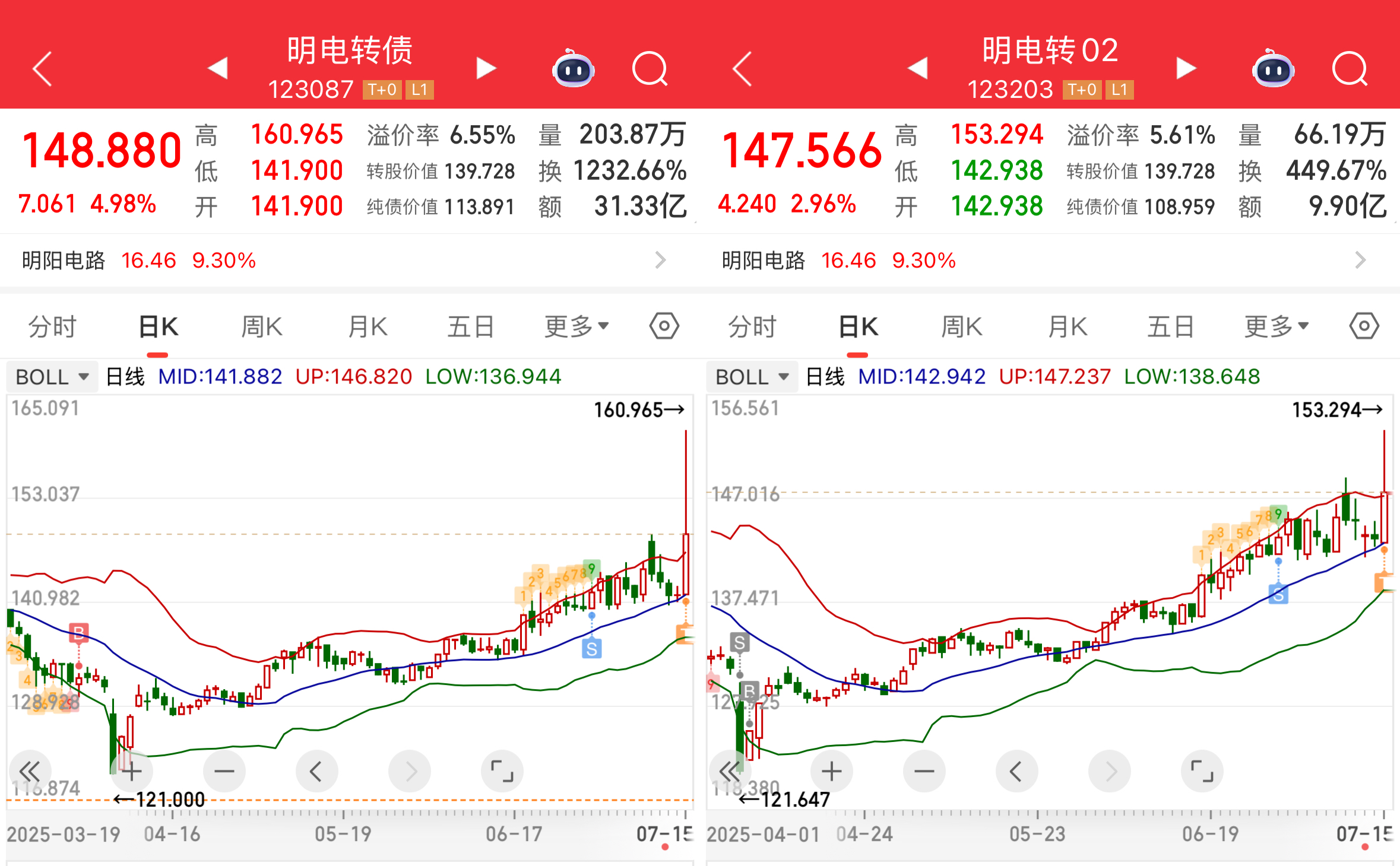 明电转债,持仓113天,盈利13.4%。