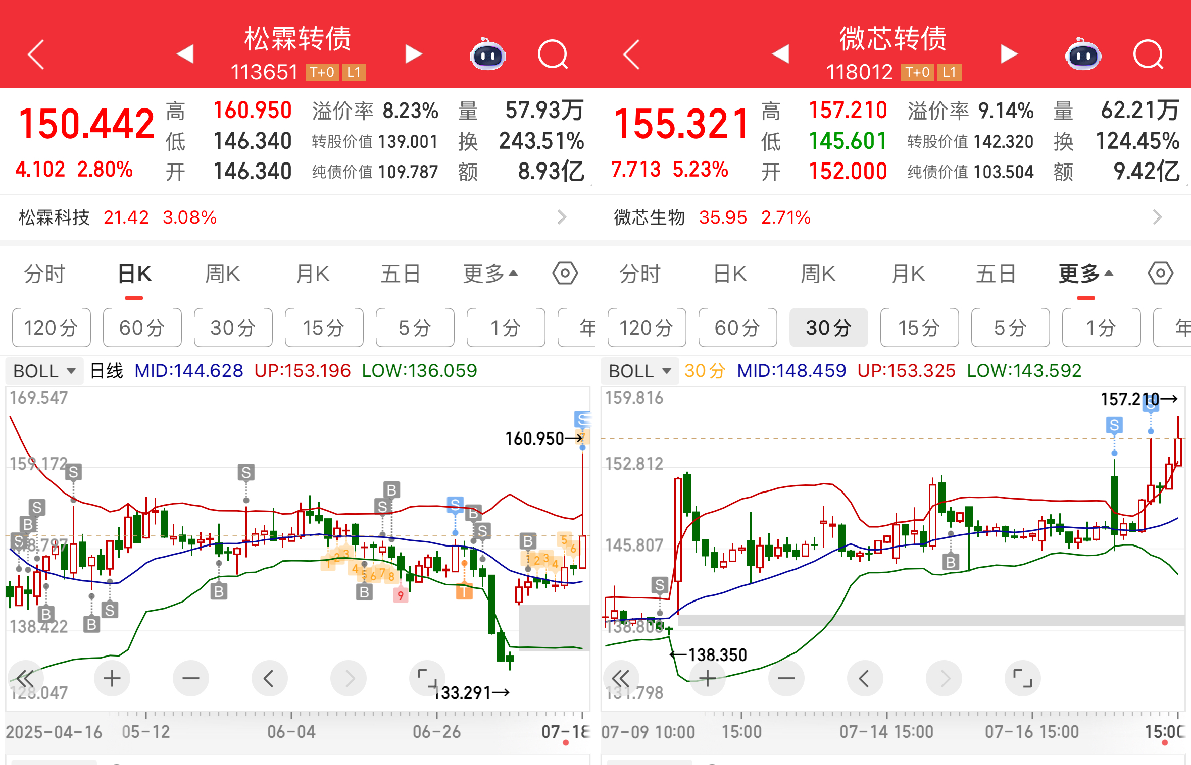 1、今天轮动策略又上鱼2条,松霖转债、微芯转债,都吃到了5%+的大肉。