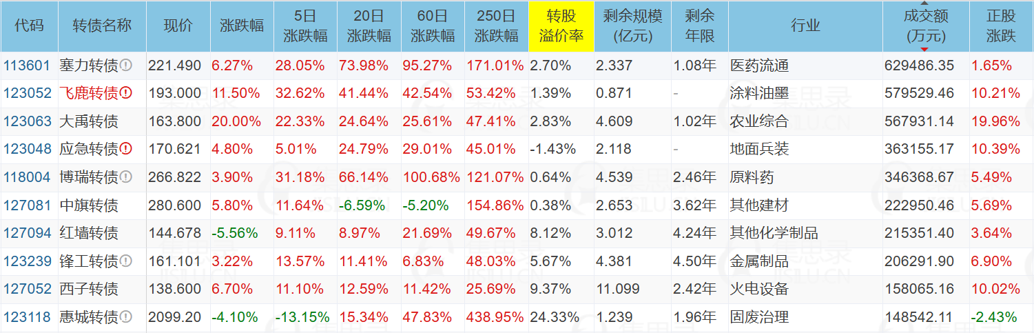 今天涨停的股债中,绝大部分都是雅江电站概念股,大部分昨天已经梳理了。如西藏天路/天路转债、汇通集团/汇通转债、冀东水泥/冀东转债、西子洁能/西子转债、重庆建工/建工转债、苏博特/博22转债、万年青/万青转债、垒知集团/垒知转债。