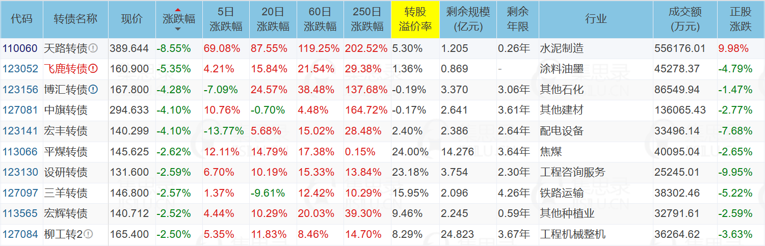 ✦今日跌停转债/正股: