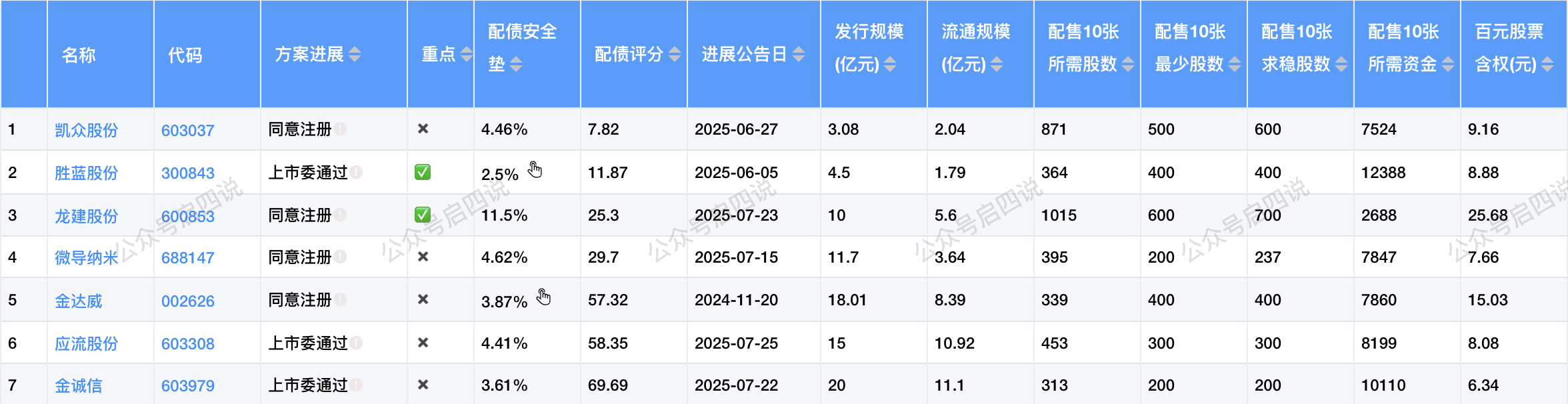 目前有7只配债股在同意注册或上市委通过阶段,在等待发行中。