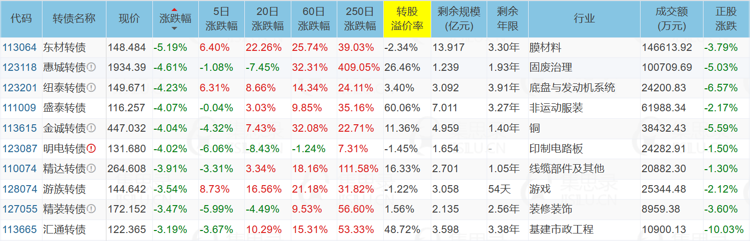 ✦今日跌停转债/正股: