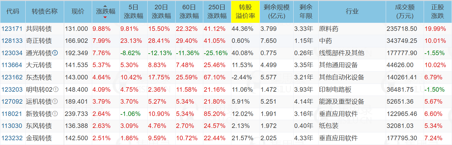 1、涨幅榜前十