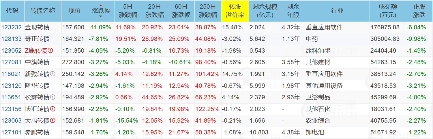 中旗转债:⾄少还需2天,溢价率-0.56%