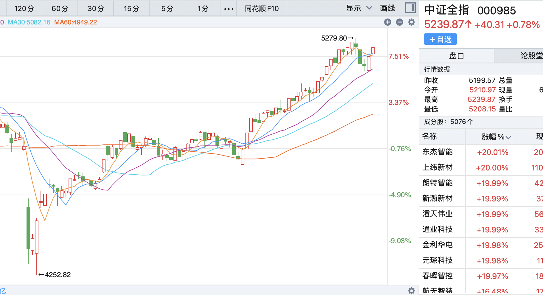 但说到底,不管是不是牛市,涨多了就要喘口气,中证全指现在都已经离60日均线拉开了挺大一段。6月20到现在已经涨了10%+,这意味着大多数散户都已经赚钱了,都有落袋为安的需求。所以后面哪怕真是牛市,也不可能一路直线冲。