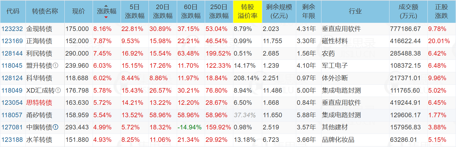 1、涨幅榜前十