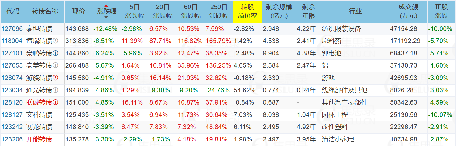 ✦今日跌停转债/正股: