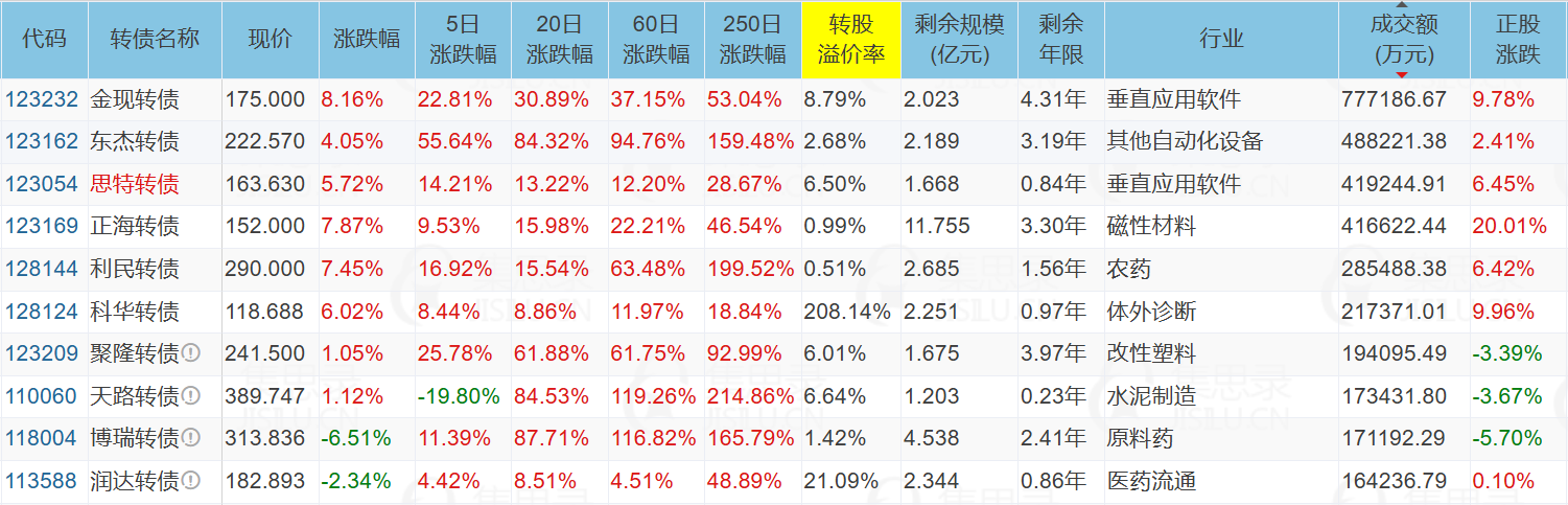 上面这两只强赎的转债,规模都比较大,转股后会对正股形成抛压,虽然是负溢价,但风险较大。