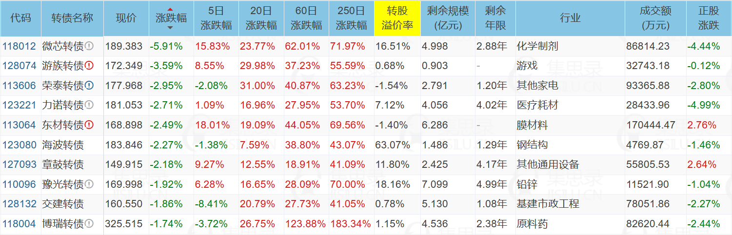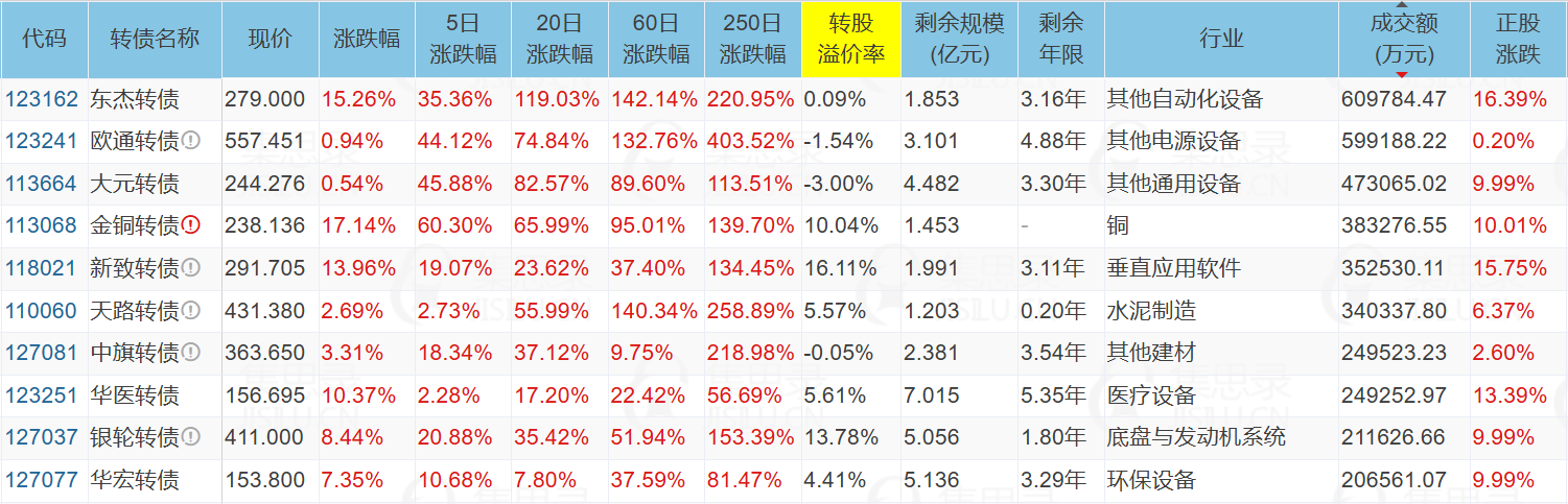 山东章鼓(2.64%)、领益智造(9.98%)、金铜转债(17.14%)、东杰转债(15.26%)
