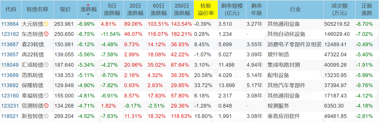 ✦今日跌停转债/正股:
