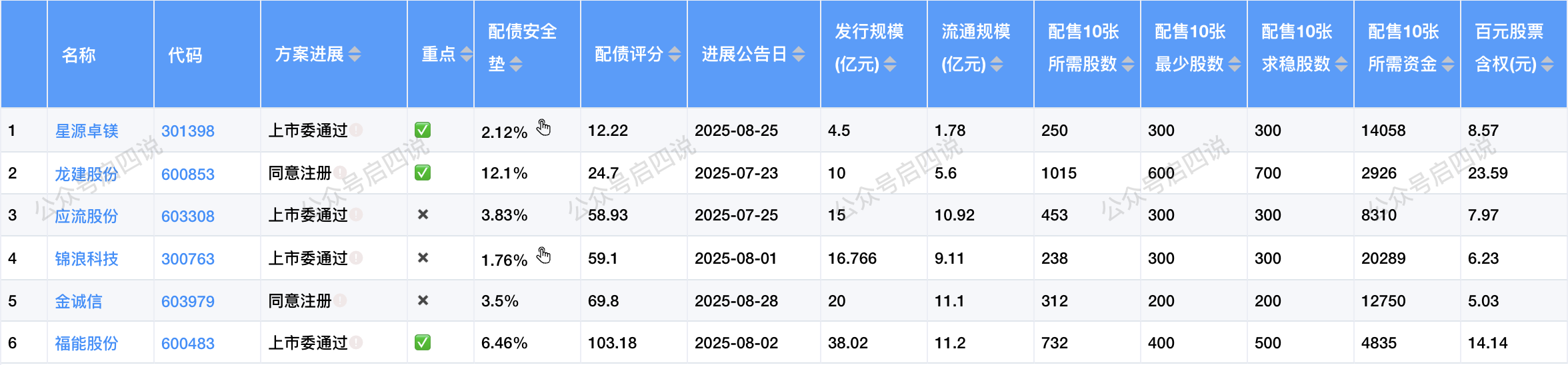 目前有6只配债股在同意注册或上市委通过阶段,在等待发行中。