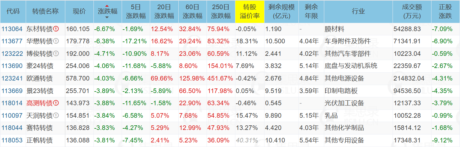 ✦今日跌停转债/正股: