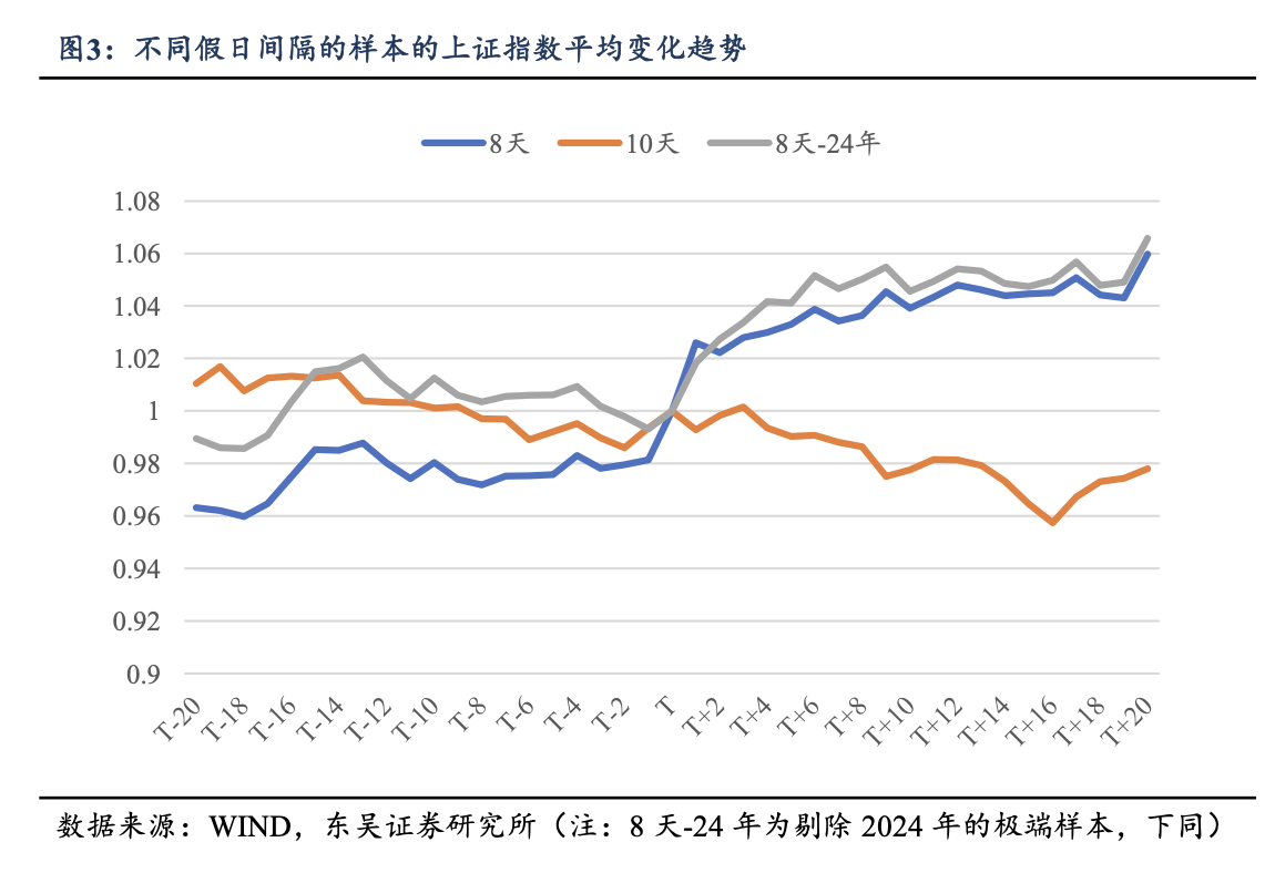尤其是放长假 8 天的年份,这个规律更明显;如果是 10 天假,节前节后反而容易走得偏弱。