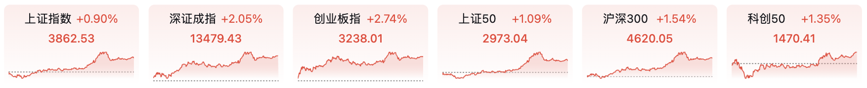 1、今天A股三大指数午后强势拉升,除了债券和红利,全面收红。市场情绪继续升温,下午一个“重要会议”的消息就能把指数拉起来,哪怕没实质内容,市场也愿意往利好方向解读,典型的情绪行情。