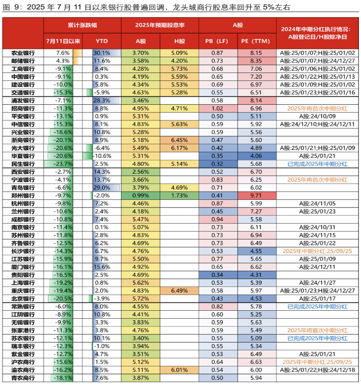 现在很多城商行的股息率回到 5% 左右了,江苏、成都银行甚至到 5.5%。