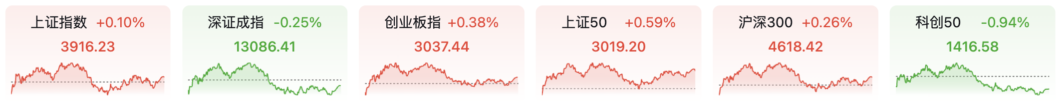 10月16日,A股各大指数收盘涨跌不一,小盘、科创领跌,红利、创业板领涨。