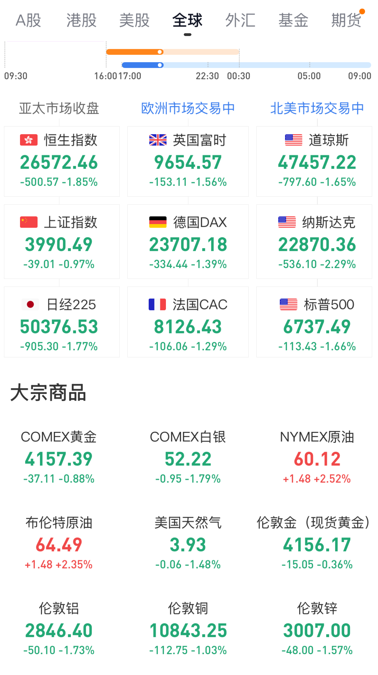 恒指跌 1.8%,日经跌 1.7%,欧洲同步下行,纳指大跌 2%多——这种整齐划一的跌法,背后基本就一个原因:美债利率上去了。