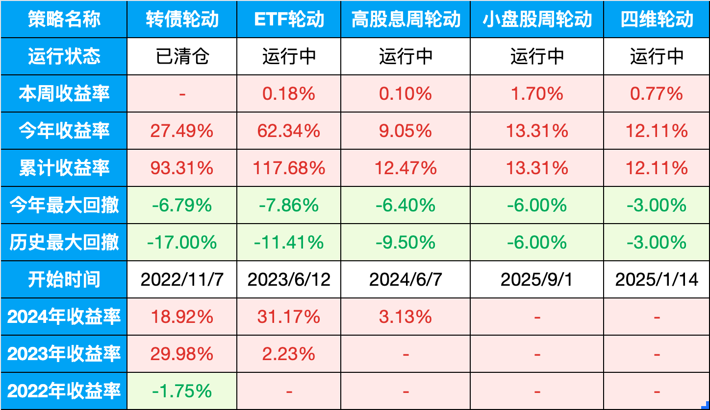 总仓位:91%(ETF轮动45%,小盘股策略30%,红利低波6%,恒生科技10%)