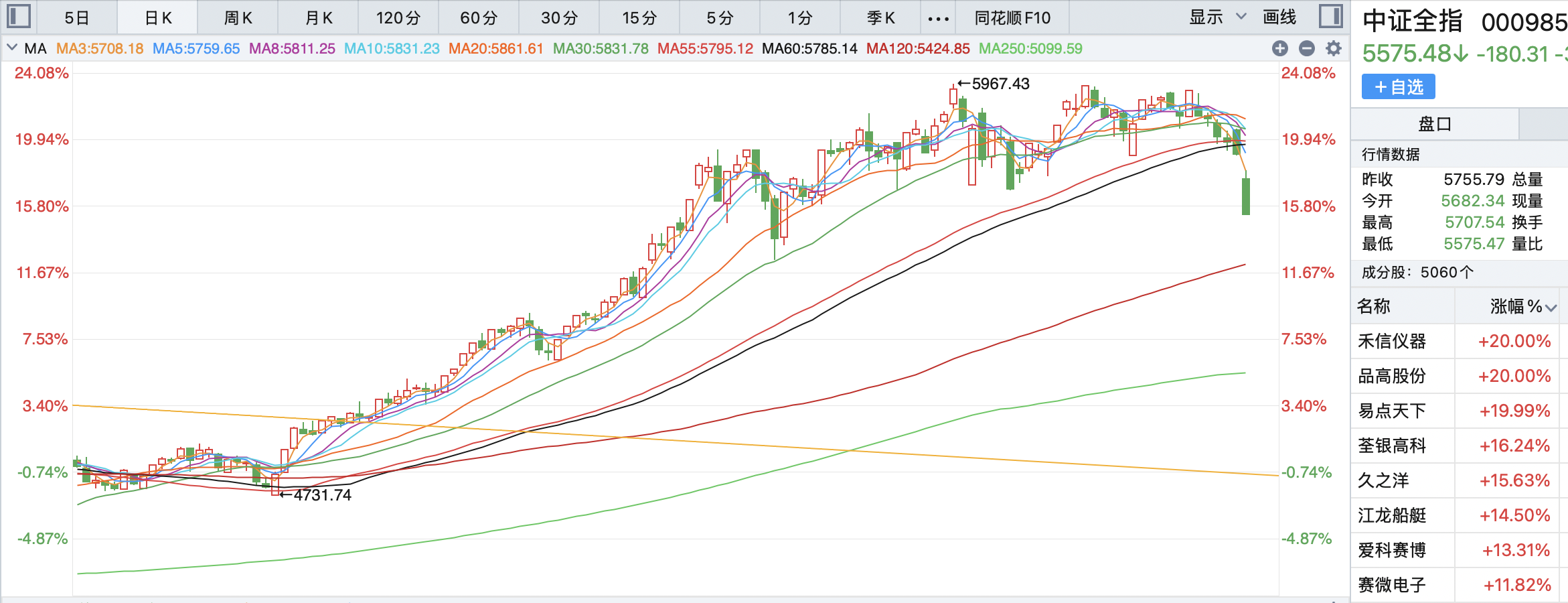 尤其今天,A股一下子5000家下跌,几乎所有行业同时向下,不知道还以为是哪条大新闻炸了。