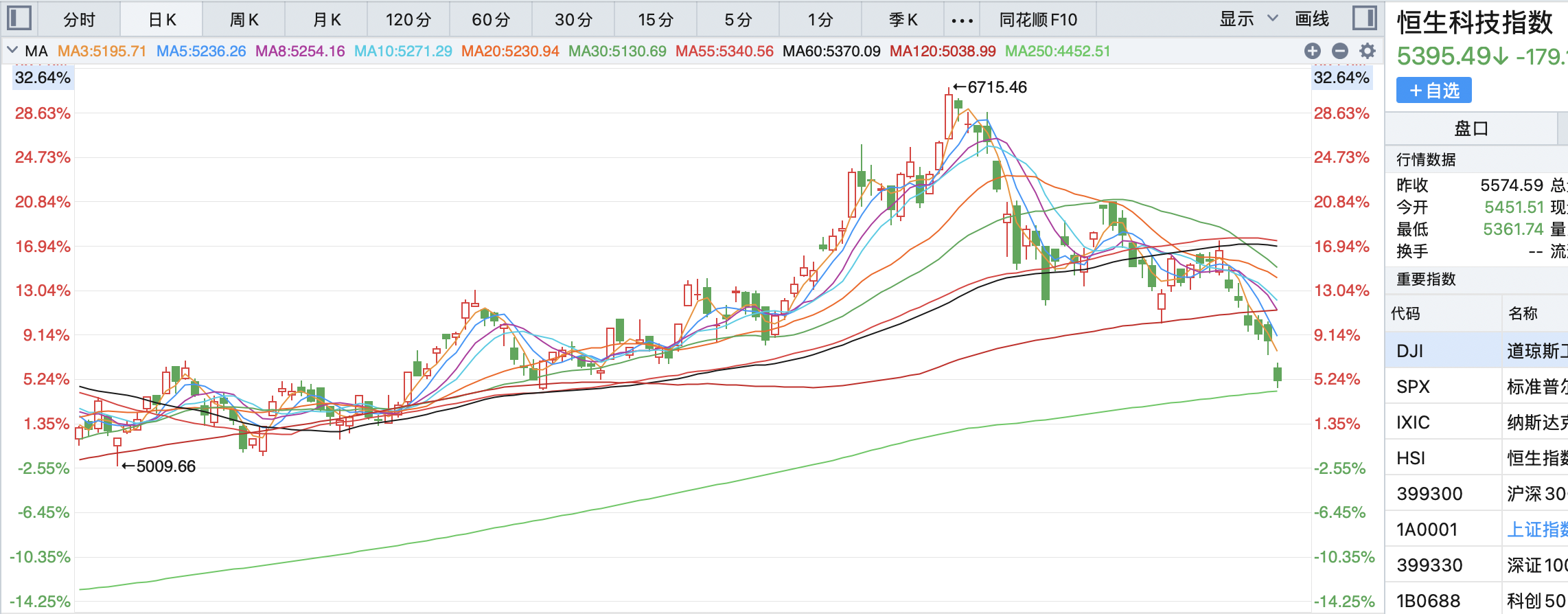 恒生科技今年最大跌幅超过20%,几乎把前两个季度的涨幅洗干净了,今天正好跌到年线止跌。