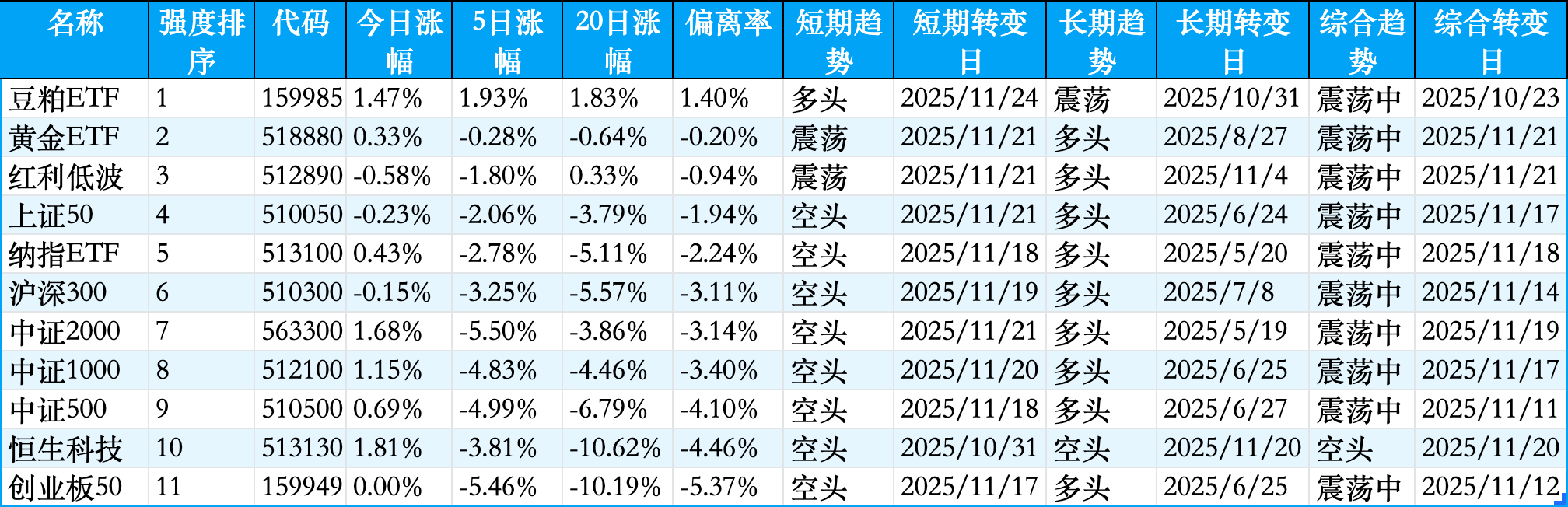 ETF趋势模型: