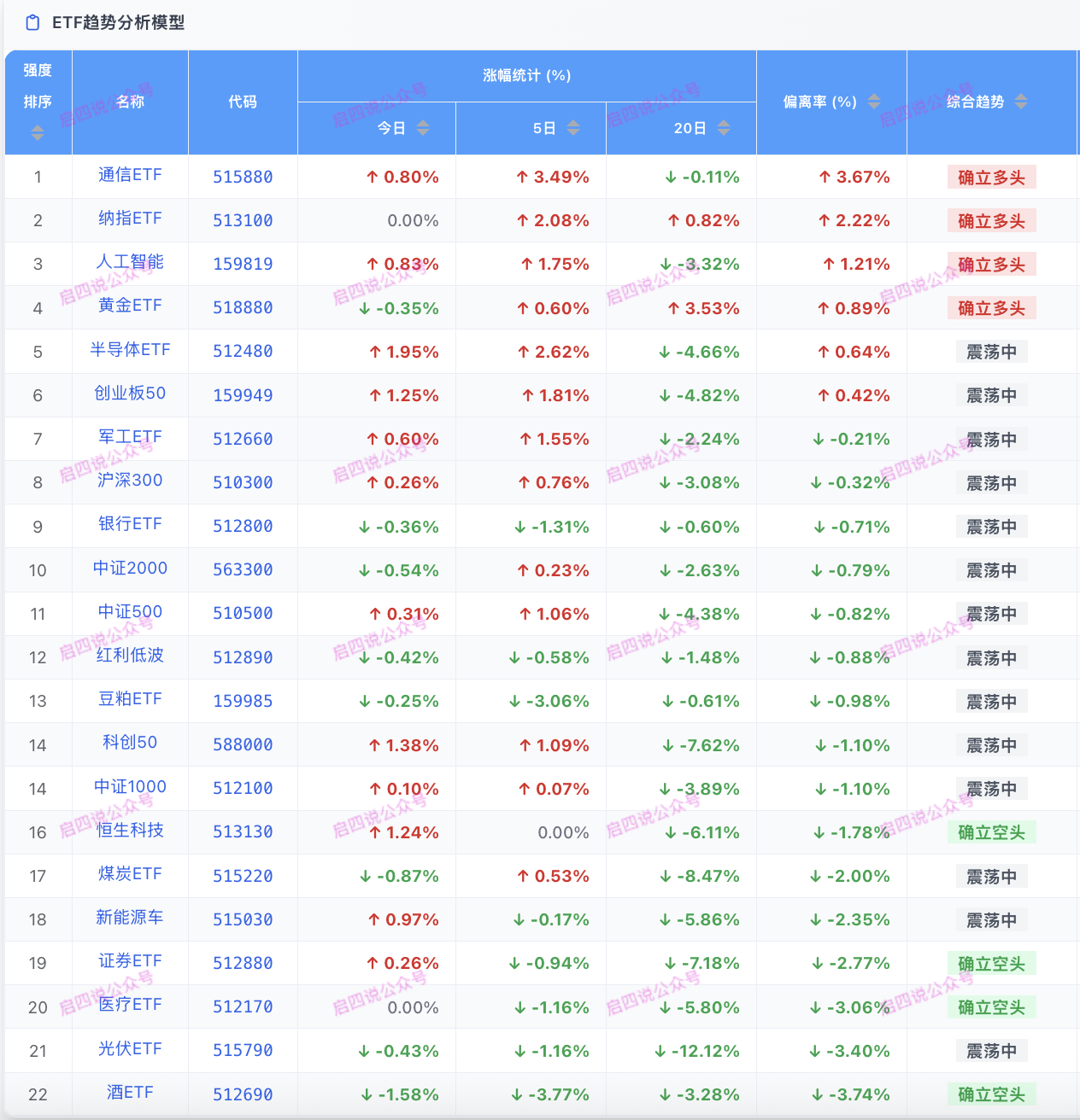 ETF趋势模型: