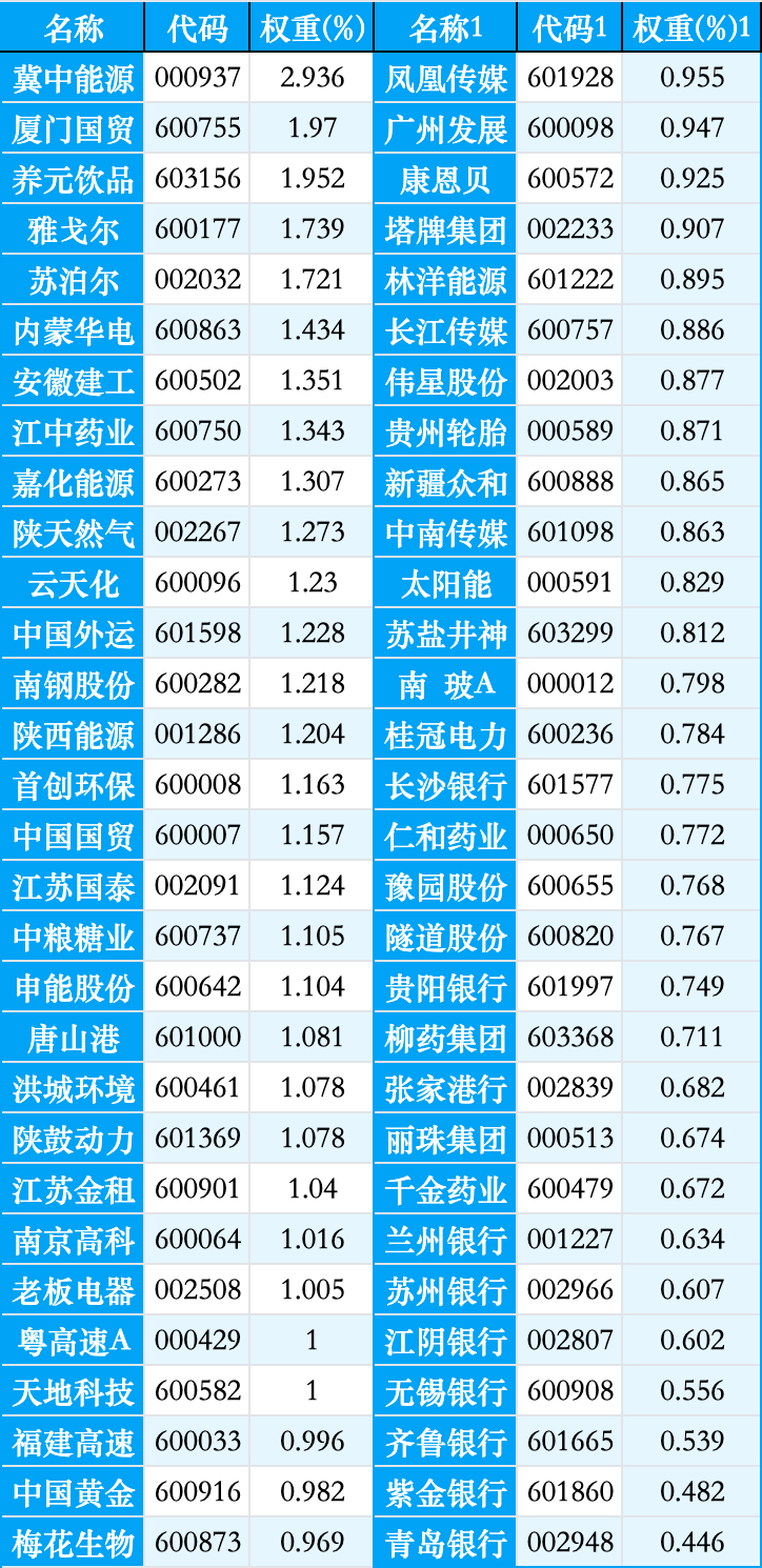 我整理收集了名单,共有60只,按照权重从高到低进行排序。