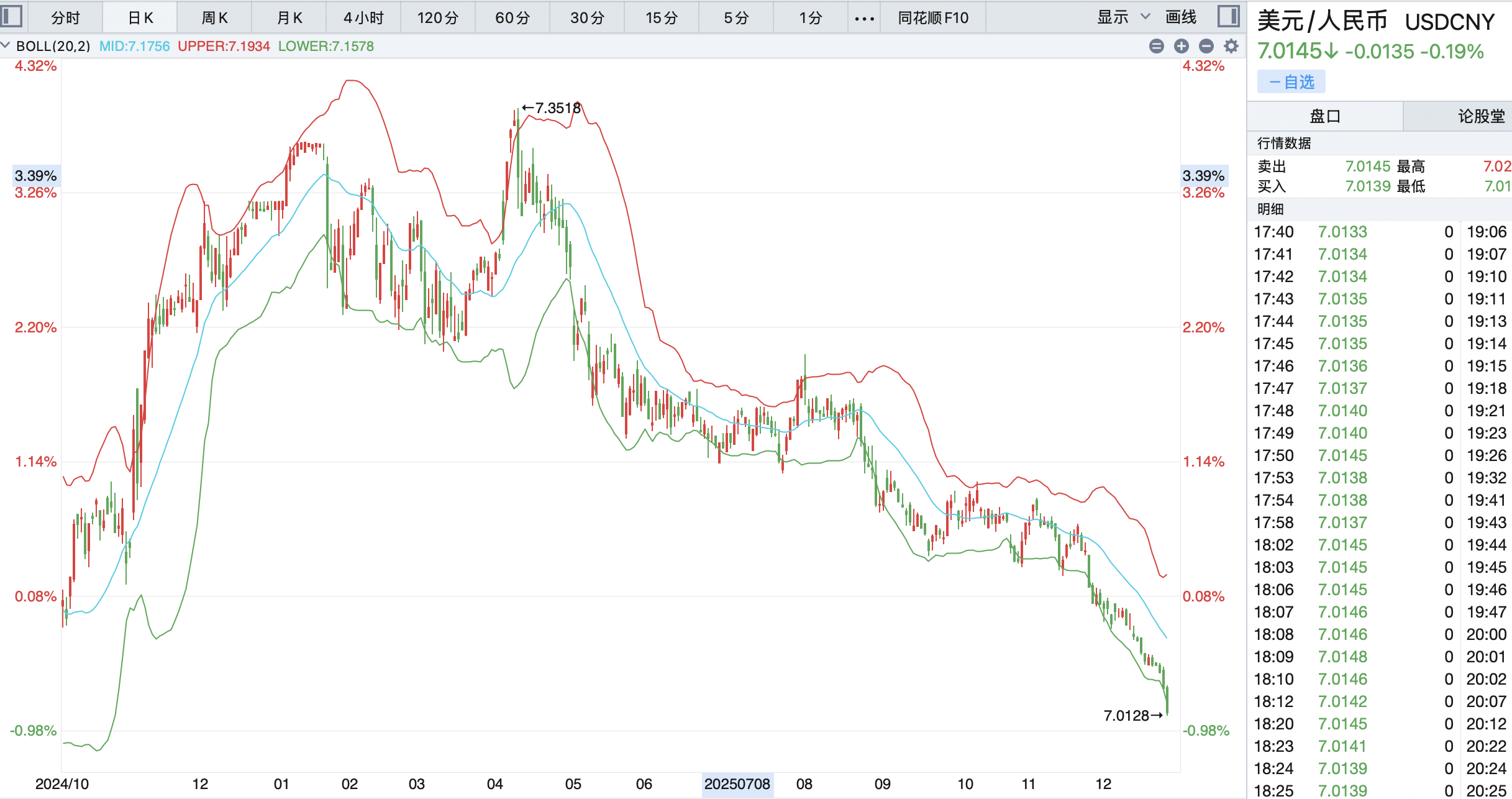 6连阳的背后,有一件事更值得注意,那就是人民币汇率快破“7”了!简单说,现在差不多是1美元换7块人民币出头,已经是一年多来的高位。