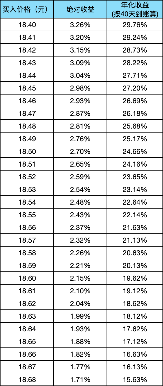 以下为按19元行权价计算的税前收益(未计交易成本,交易成本约0.03%-0.05%,可忽略):