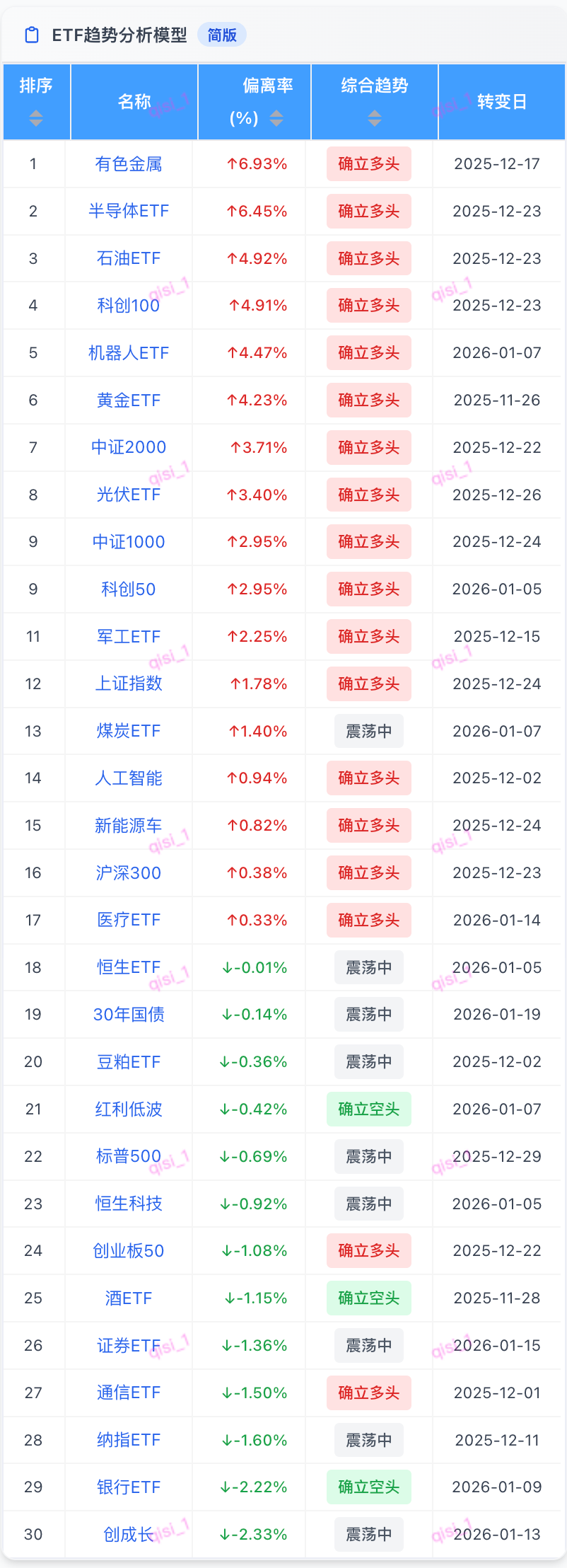 确立多头:18只 | 确立空头:3只