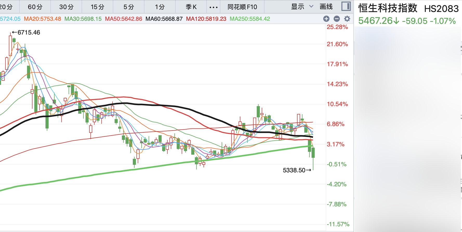 目前恒生科技已经连续2天跌破年线,高位回撤达到了18.5% 。